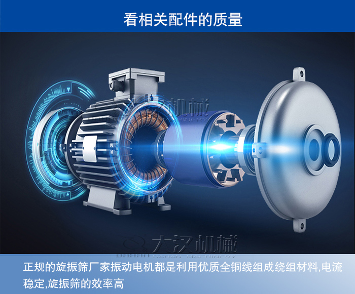 挑選旋振篩電機時,要仔細聽電機運轉時有無雜音出現等,正規的旋振篩廠家選用的振動電機都是利用優質全銅線組成繞組材料,銅線的電阻率低,線絲較細,在振動電機的定子線槽內繞線圈數更多,電流就越穩定,單位面積的通過電流量也就越大,大概是每平方毫米能通過5-8A電流,這就從根本上奠定了旋振篩的效率維持在較高的基數。很多不良商家為了以更低的價格吸引客戶并獲取更高額的利潤差,就選用了一種稱之為“漆包線”的劣質振動電機配備在自己的振動篩里面。這種電機的繞組材料為鋁線,鋁線的價格要比銅線低很多,但電阻率高達0.028,電流穩定性很差;且鋁線直徑要比銅線粗,同樣的定子線槽鋁線線圈數就要少多了,每平方毫米能通過的電流量大概是3-5A了。配備這樣的振動電機怎么會有高的效率。