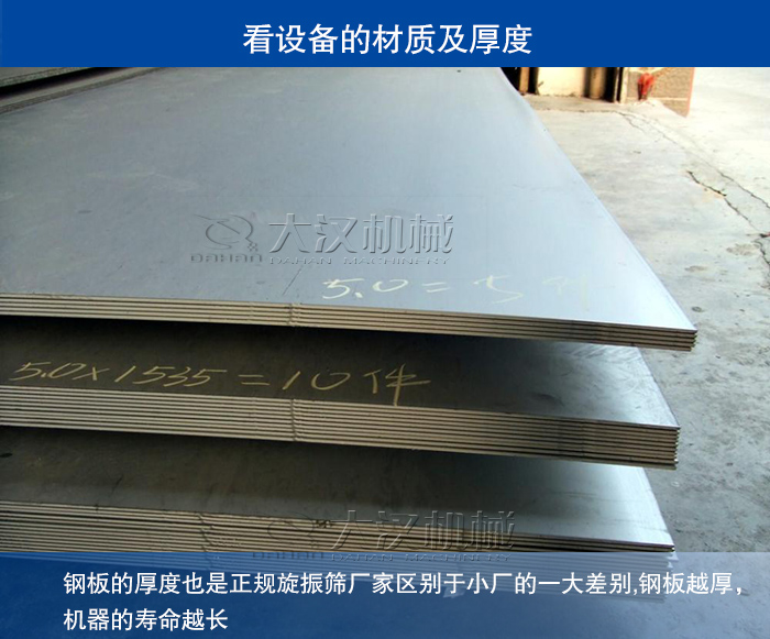除了材質的選擇方面外,鋼板的厚度也是正規旋振篩廠家區別于小廠的一大差別。旋振篩使用板材常見的有Q235碳鋼和304不銹鋼兩種,但其厚度的不同也可以直接影響銷售價格。我們拿常見的圓形振動篩為例:一款直徑800的旋振篩市場售價在6500元-7300元之間,多用板材厚度在2mm,但如板材厚度降低到1.7或更低,價格上會大大降低,但是旋振篩在使用過程中極易出現篩框斷裂、出料口斷裂等問題,正常的旋振篩的使用年限在5年左右,可這種鋼材差、鋼板薄的旋振篩可能使用半年就報廢了。
