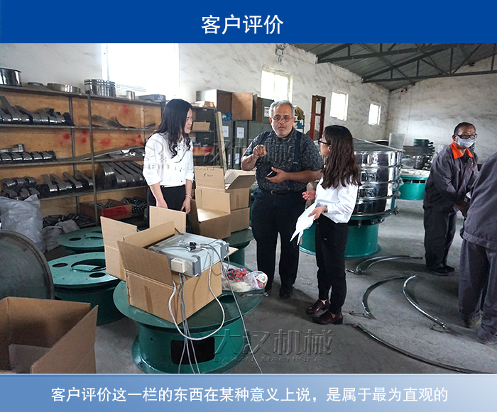 客戶評價這一欄的東西在某種意義上說,是屬于為直觀的,也是比較真實的,在購買當中,每一個消費者都會去看的,以至于思考到底要不要購買,這也是比較真實的,客戶的好評會給旋振篩生產廠家加很多分。