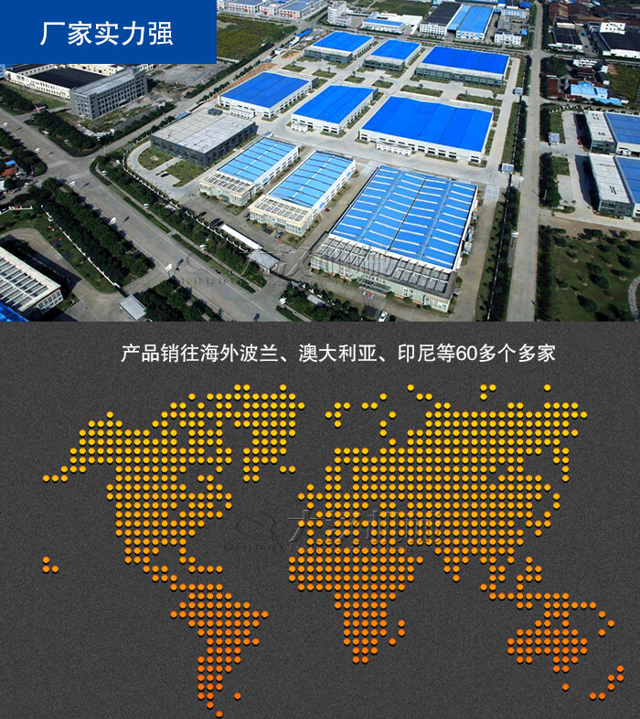 大漢廠家建廠已有15年,積累了豐富的生產經驗,,構成了完整的設計、加工制造及售后服務的綜合能力,擁有300余臺中,小型加工,焊接及組裝設備,產品遠銷美國、俄羅斯、馬來西亞、印度、澳大利亞等40多個國家和地區。