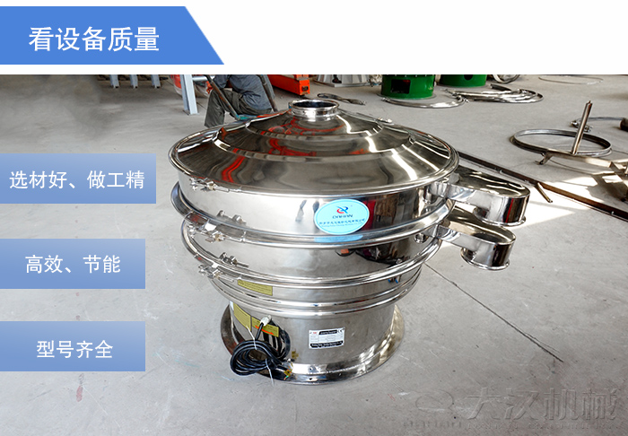 大漢面粉旋振篩采用304不銹鋼材質拋光而成,篩機內外經過拋光和打磨,無衛生死角,設備密封嚴謹,不會出現粉塵溢散影響工作環境,大漢面粉旋振篩可以篩分500目以內的物料,彈跳球清網裝置,無堵網現象。