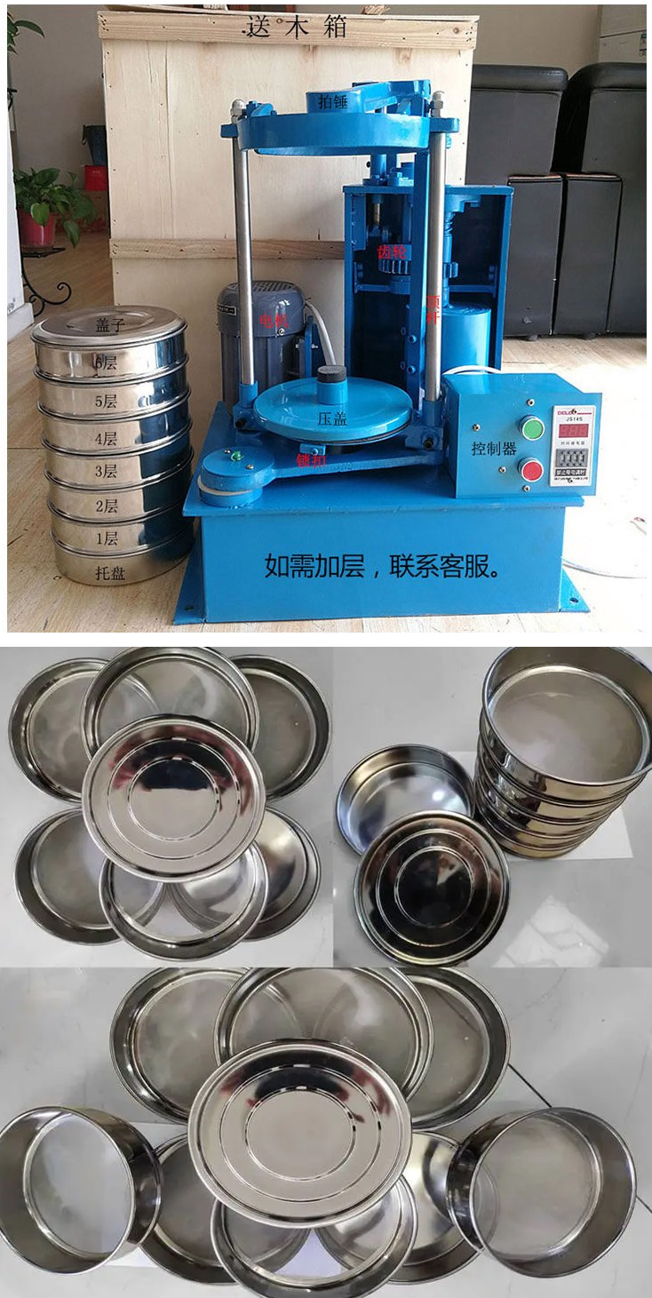 3、可容納1~8個篩子(包括篩底),可連續分選7個不同粒度段的樣品。