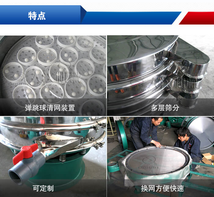 【優勢】:①1-5層篩網,可以同時進行2-6個粒度規格的篩分和過濾;②篩分精度可達到500目,加裝彈跳球清網裝置,篩孔不堵塞,篩分精度高;③可以按照用戶要求免費設計。